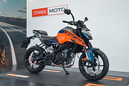 KTM 125 DUKE sice využívá motor o objemu jen 125 cm3, ale můžeš být v klidu – tahle mašina je 125% DUKE! KTM 125 DUKE 2024 je postaven v duchu kategorie NAKED stejně jako větší bratři. Zaujme novým svalnatým vzhledem, novým rámem, kvalitním odpružením, LED světlomety, pokročilými jízdními funkcemi a více než dostatečným výkonem.