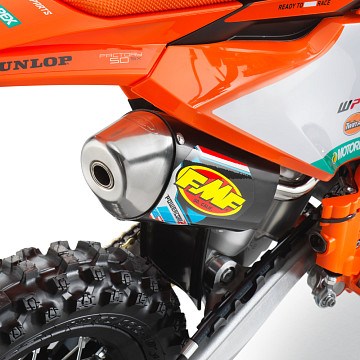 Motocykl KTM 50 SX FACTORY EDITION 2025 je se svým KTM FACTORY RACING renomé připraven vyrazit do vysoce konkurenční třídy 50 cm3. Je jednoznačně READY TO RACE, má vyspělý ocelový rám, kapotáž, výkonný motor a je osazen těmi nejlepšími komponentami, jako jsou pneumatiky DUNLOP Geomax MX53, výfukový systém FMF, 35mm vidlice WP XACT AER, tlumič WP XACT a hydraulické brzdy Formula.