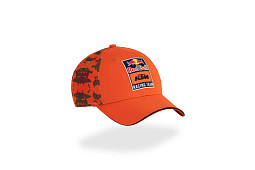 Luxusní kšiltovka KTM Red Bull Racing v oranžové barvě doplněná maskáčovými prvky. 3D logo KTM Red Bull Racing, nastavitelná.